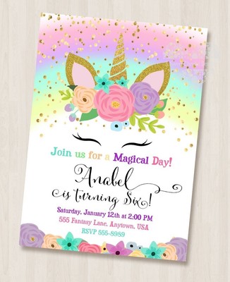 10 Unicorn Rainbow Girl Birthday Party Invitations 2nd 3rd ...
