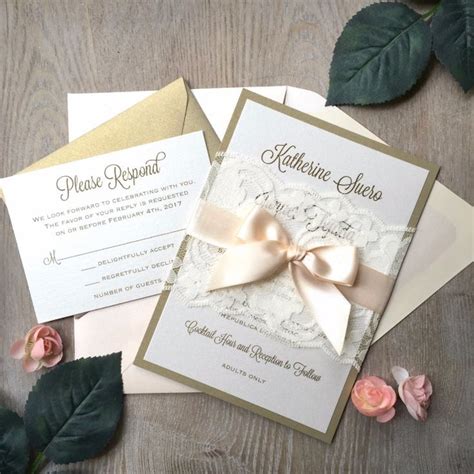 Lace Wedding Invitation - Gold and Ivory Shimmer Card ...
