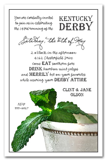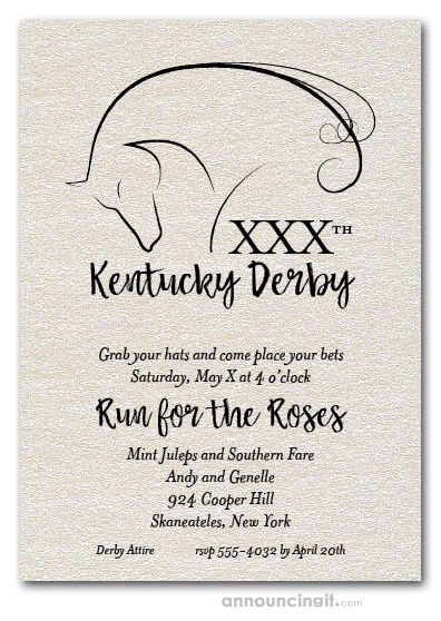 Kentucky Derby Invitation. Kentucky Derby Invitations are great for derby-viewing parties and other horse racing-themed events. KentuckyDerby.com has everything you need to plan your Kentucky Derby party - get recipes, fashion tips, and party ideas!